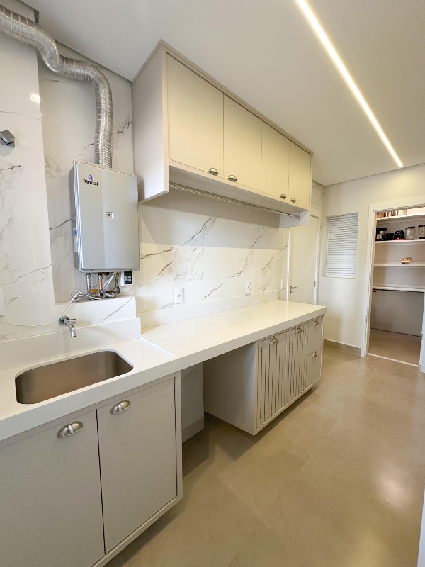 Lavanderia completa e banheiro de serviço.